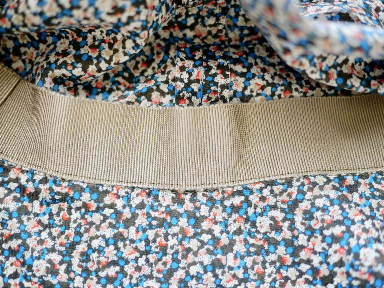 ハットのツバ(片面)に芯を貼って下さい。